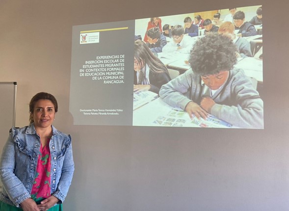 María Teresa Hernández presentó su defensa de tesis para obtener el grado académico de Doctor en Ciencias de la Educación, mención Educación Intercultural de la Universidad de Santiago de Chile. El objetivo del estudio fue analizar las experiencias escolares de estudiantes migrantes y los efectos de sus prácticas desplegadas, con el objeto de categorizar procesos de inserción escolar.