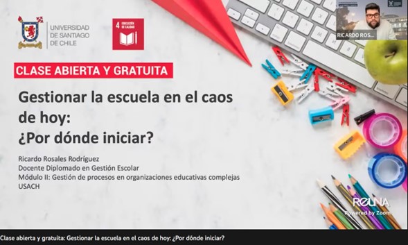 Profesor Ricardo Rosales ofrece clase abierta en el marco del Diplomado en Gestión Escolar del Departamento de Educación