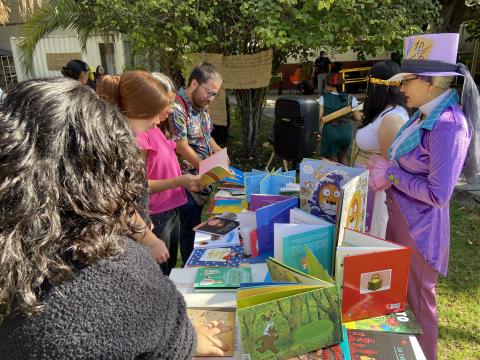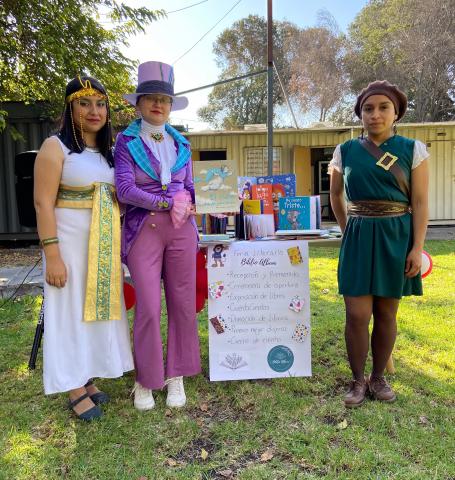 Feria literaria fue el nombre de la actividad organizada por las estudiantes de PEGB María José Inostroza, Natalia Figueroa y Milena Maldonado, a través de biblio Álbum, cuyo objetivo fue la exposición de libros infantiles, cuentacuentos, intercambio y donación de libros, así como de una competencia de disfraces.