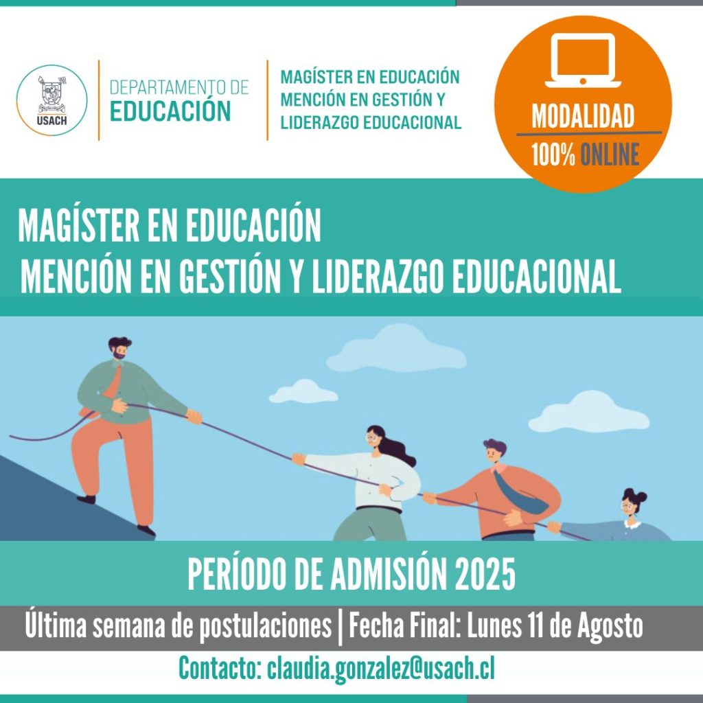 Últimos días: Magíster en Educación mención en Gestión y Liderazgo Educacional de la USACH cierra postulaciones el lunes 11 de agosto